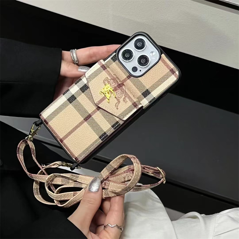 iphone16 ケース カード 収納 ハイ ブランド ストラップ 付き iphone16pro/16promax ケース。